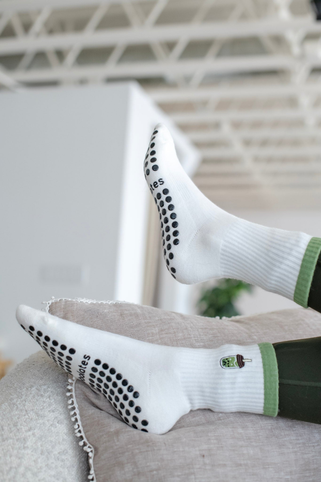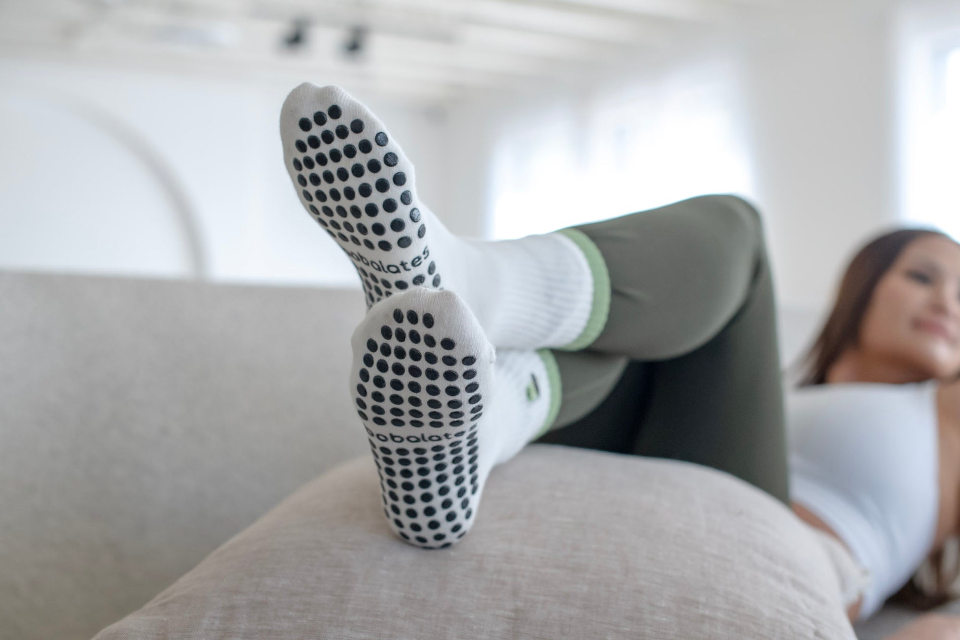 Anti-slip sole for balance and safety. Perfect for movement with Pilates, yoga, barre. Designed with non slip silicone grips made from cotton blend these socks will hug your feet comfortably while letting you move with confidence.