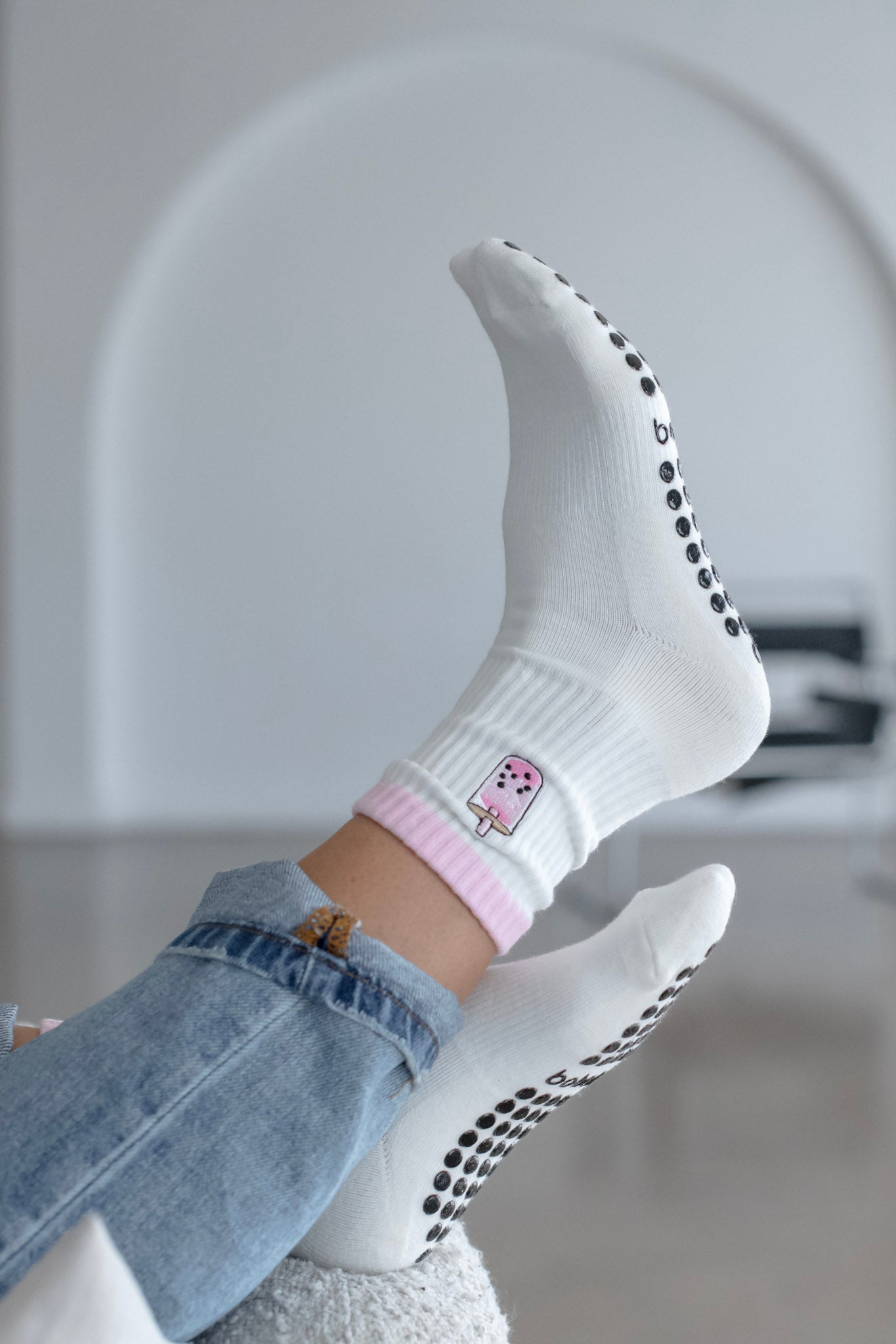 Anti-slip sole for balance and safety. Perfect for movement with Pilates, yoga, barre. Designed with non slip silicone grips made from cotton blend these socks will hug your feet comfortably while letting you move with confidence.