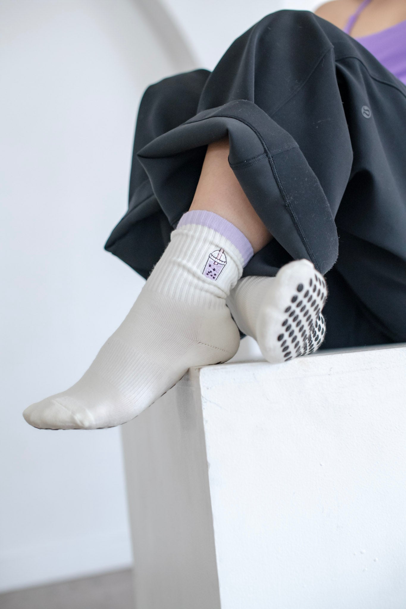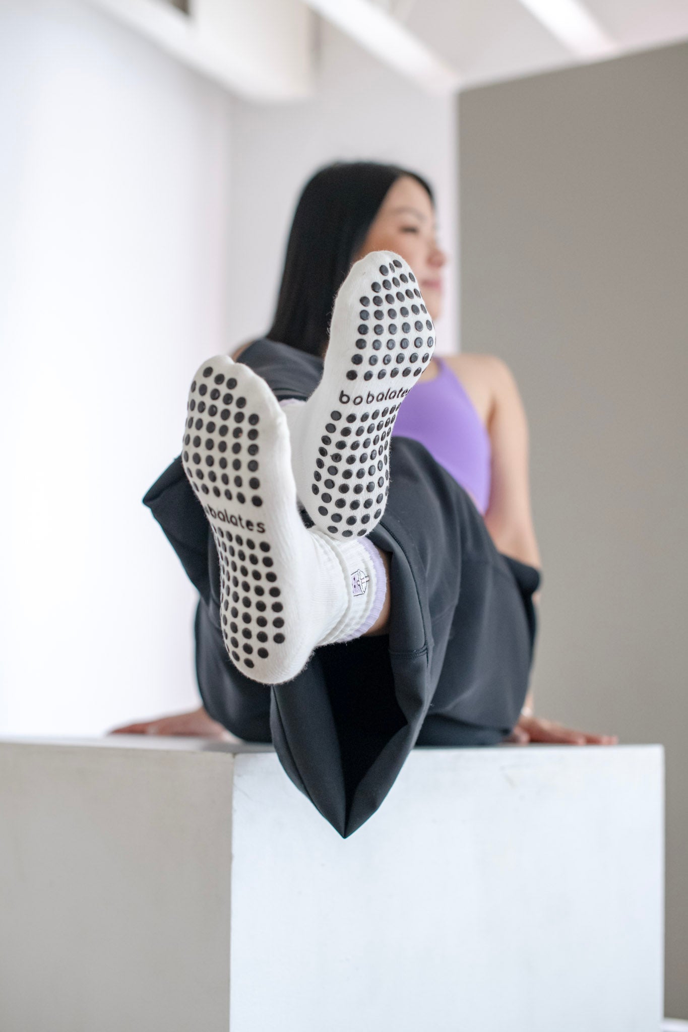 Anti-slip sole for balance and safety. Perfect for movement with Pilates, yoga, barre. Designed with non slip silicone grips made from cotton blend these socks will hug your feet comfortably while letting you move with confidence.